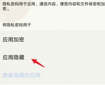 4、然后在打开的页面中,选择应用隐藏的选项。
