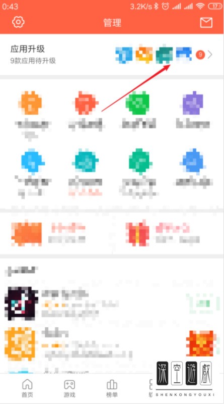 4. 第四步,进入应用升级页面即可看到需要升级的应用,点击最下方的全部升级,即可对应用进行手动升级。