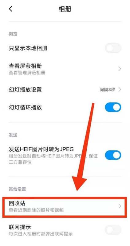 小米手机可通过清空回收站的方式将图片永久删除,具体操作步骤如下: