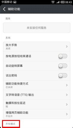 3、进入辅助功能菜单,里面有一个【开车模式】