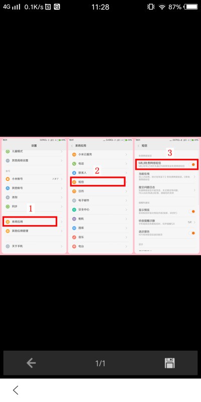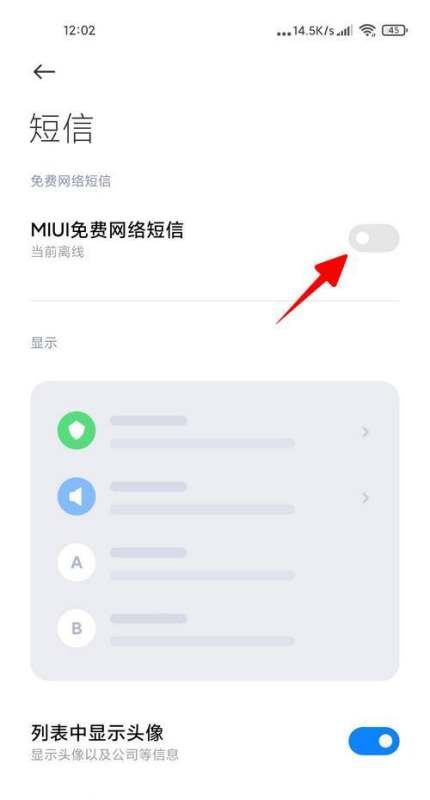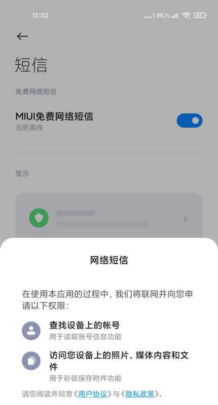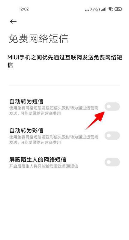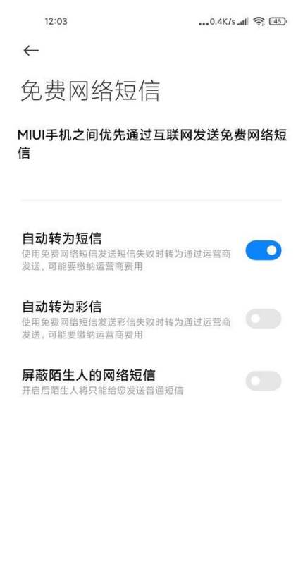 开启【MIUI免费网络短信】,见图