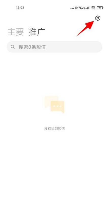 在短信应用页面顶部,点击右上角的“设置”图标,进入设置界面。