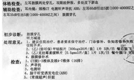 去医院检查之后发现,耳膜穿孔孔径很大要做修复手术,不仅如此心理也受到很大的伤害,经常做噩梦,在梦中惊醒,还变得呆滞沉默寡言。