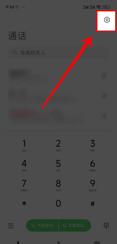 进入通话设置:在通话页面右上角点击【设置】图标(齿轮形状)。