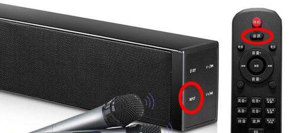 将麦巢回音壁音响插上电,并确保话筒已安装好电池。