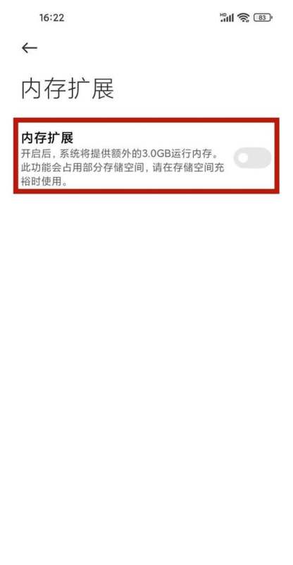 关闭内存扩展开关在内存扩展管理界面中,会看到“内存扩展”右侧的开关按钮(默认状态为开启,显示为蓝色)。点击该开关,将其切换至灰色关闭状态即可完成操作。