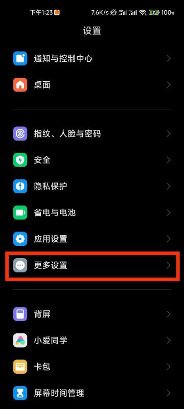 2. 在设置里面往下滑,找到【更多设置】。