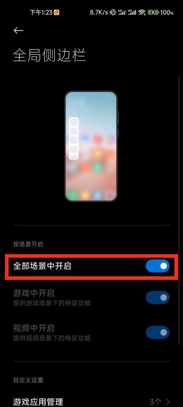 1?? 先点「设置」→ 滑到底点「特色功能」→ 进「全局侧边栏」→ 开「全部场景」就行!蓝了就OK~