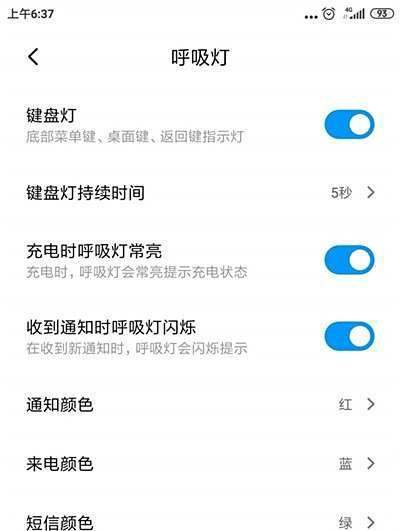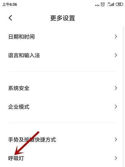 在更多设置中点击“呼吸灯”选项。