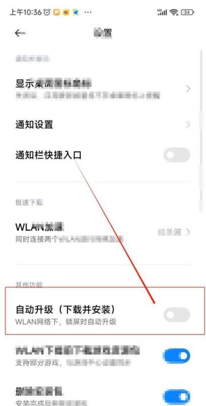 点击“自动升级”右侧的开关按钮,当按钮颜色从蓝色变为灰色时,表示功能已成功关闭。
