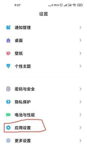 定位应用设置在设置页面中,找到并点击【应用设置】选项,进入应用管理相关功能区。