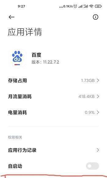 选择目标应用从应用列表中找到需要设置空白通行证的应用(如示例中的【百度】),点击进入其应用详情页。