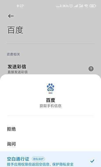 启用空白通行证在弹出的权限选项中,选择【空白通行证】选项,系统将自动为该应用生成空信息,阻止其获取真实设备数据。