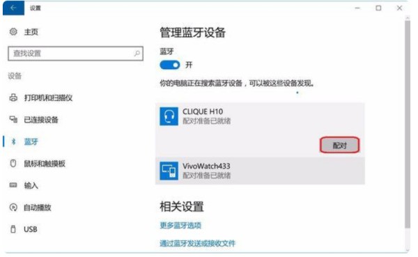 3、找到您的蓝牙耳机设备,会有【配对】选项,并点击;