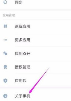 2.进入设置界面之后,点击下拉到最下角,找到关于手机这个字样的图标,点击进入。