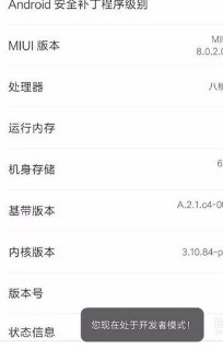 3.进入关于手机界面之后,我们找到MIUI版本,找到之后,点击这个按键数次,直到桌面最下角出现你已处于开发者状态,之后点击退回上一步(持续点击5次,系统是会提示的,次数到了就会提示你进入开发者模式,没到就会说你还差几次)