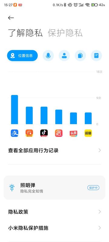 可通过点击手机设置----隐私保护---查看全部应用行为记录