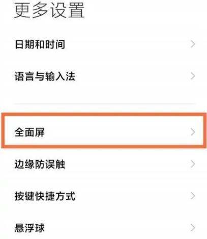 定位全面屏选项在设置列表中滑动查找【更多设置】(部分系统版本可能直接显示为“特色功能”或类似分类),进入后选择【全面屏】选项。此选项用于管理全面屏相关的显示与交互设置。