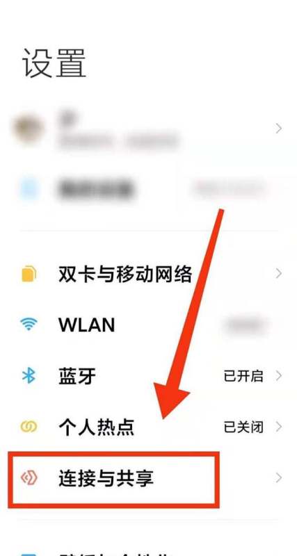 步骤二:点击【连接与共享】在设置界面中,滑动找到【连接与共享】选项并点击进入。该选项通常位于设置菜单的中部区域,负责管理设备间的互联功能。