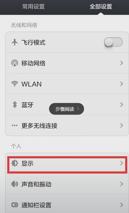 二、点击“设置”功能之后,然后我们在“全部设置”里面找到“个人-显示”,点击进入,如下图所示。