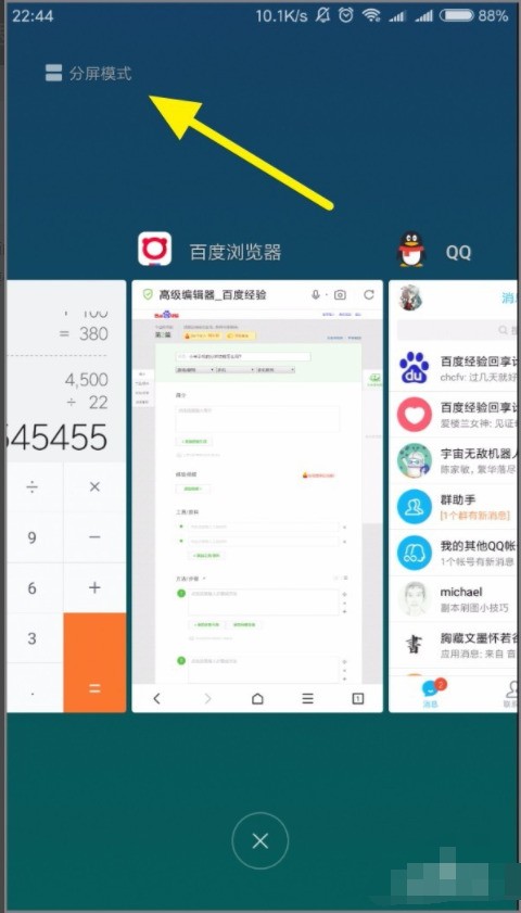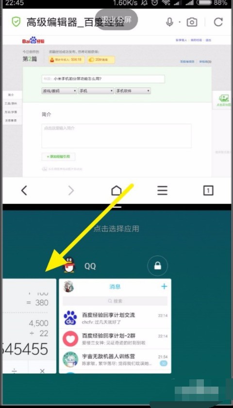 4. 选好第二个App,屏幕立马分成上下两块,游戏和别的应用同时开着,边玩边聊都不耽误。