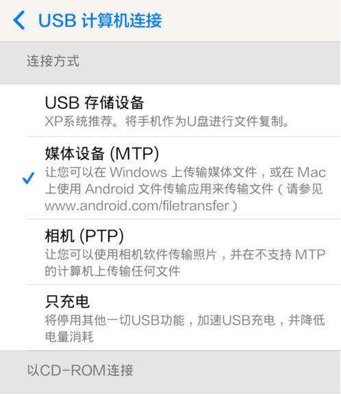 出现“USB计算机连接界面”选择自己所需的连接方式。