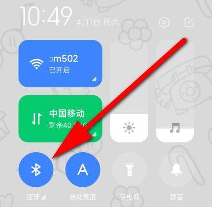 进入蓝牙设置界面打开小米手机的控制界面,选择蓝牙图标并长按,进入蓝牙设置界面。