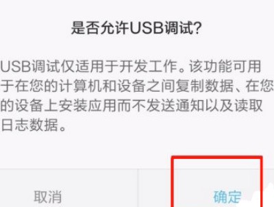 5、选择确定允许usb调试即可。