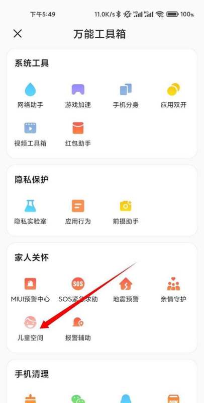 步骤一:进入手机管家万能工具箱打开小米手机的“手机管家”应用,在首页找到并点击“万能工具箱”页面。