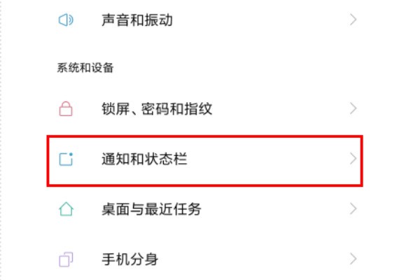 2、在设置界面中,找到通知和状态栏一栏,点击进入。