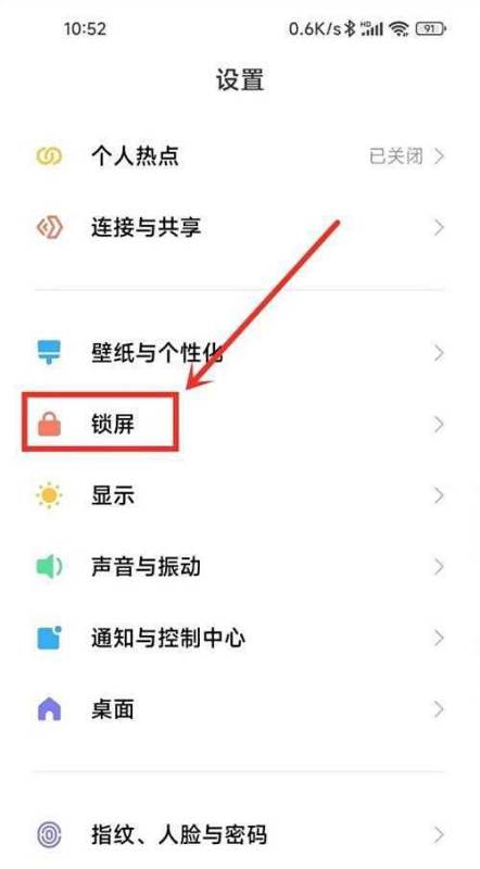 打开设置并进入锁屏选项:打开小米手机“设置”,点击“锁屏”设置项。