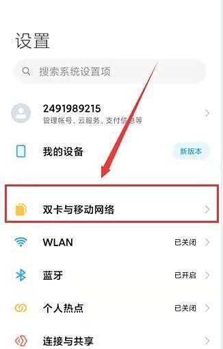 选择双卡与移动网络:在设置界面中,找到并点开【双卡与移动网络】。