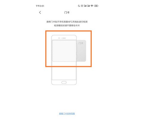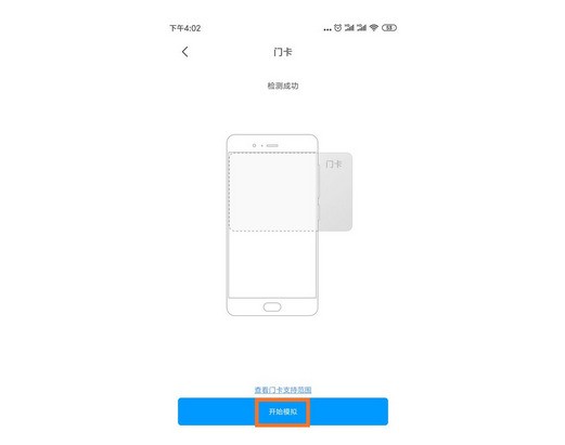 4、将门卡贴在手机背面拍改的NFC天线上进行检测,检测模拟时不要移动门卡。