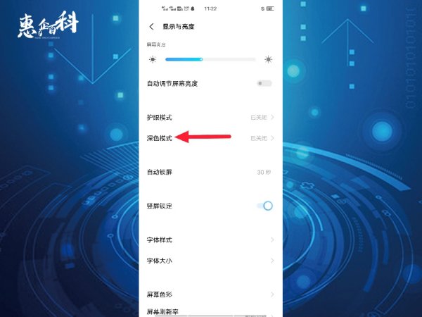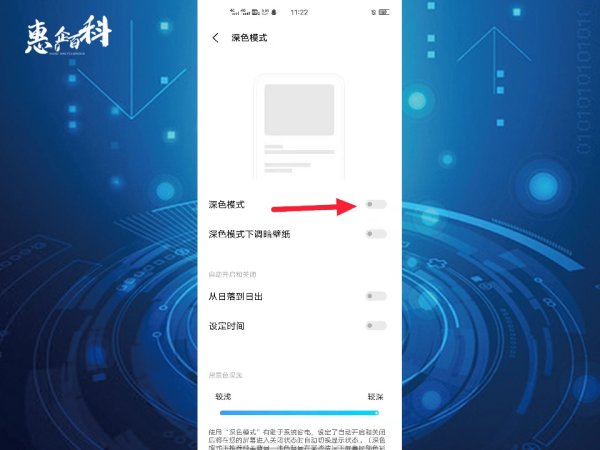 然后,在弹出的页面中,选择深色模式右侧的开关按钮,点击开启就行了。