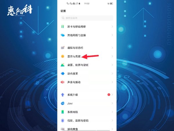 首先打开手机,进入页面后,点击显示与亮度选项;