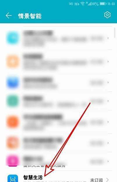 在华为手机情景智能中添加智慧生活的操作步骤如下: