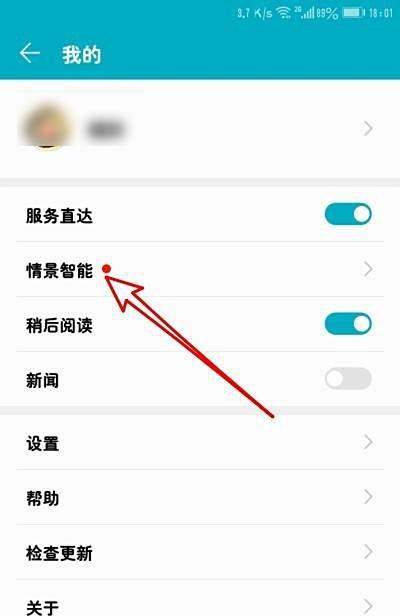 进入情景智能设置在个人中心页面中,找到并点击情景智能的设置项(可能标注为“设置”或“更多设置”)。