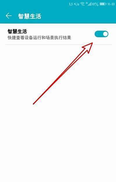 开启智慧生活功能进入智慧生活详情页面后,找到对应的开关按钮(通常为蓝色或灰色滑块),点击将其切换至打开状态(滑块显示为蓝色或“ON”)。