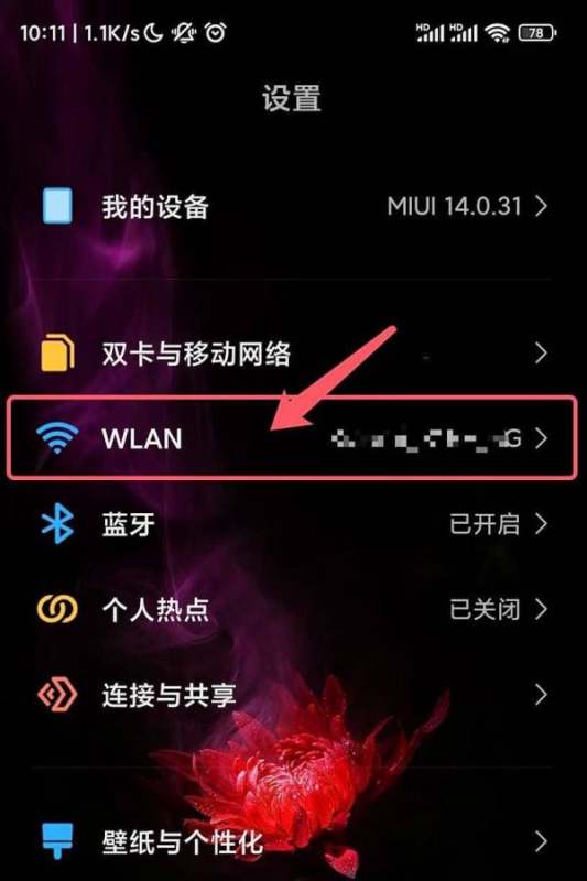 进入WLAN设置页面:在小米手机【设置】页面中选择【WLAN】设置。