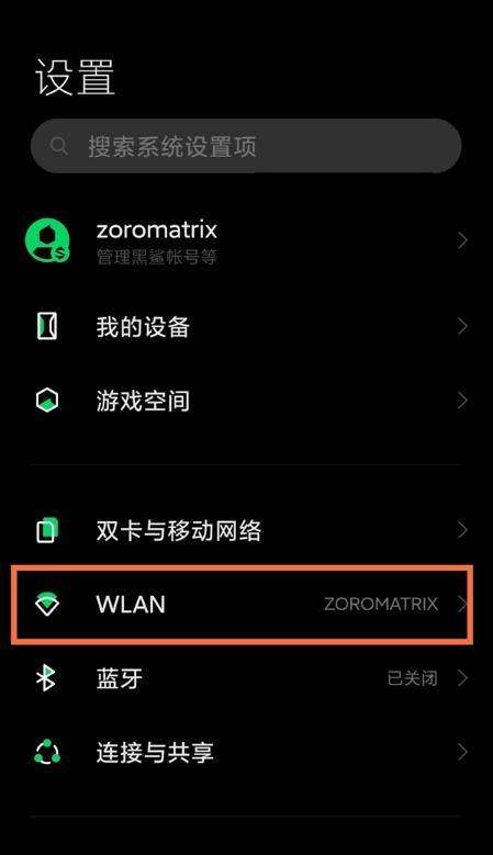 第二步:打开WLAN功能在设置菜单中滑动找到WLAN选项,点击进入无线网络管理界面。
