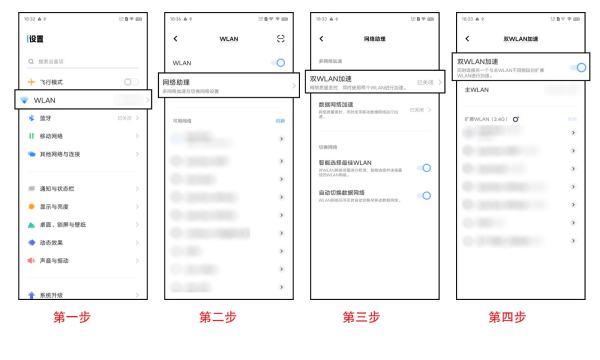可以进入设置--WLAN--智能多网络加速/网络助理,开启双WLAN加速,并选择扩展WLAN使用即可。(若没有此开关则表示机型不支持)