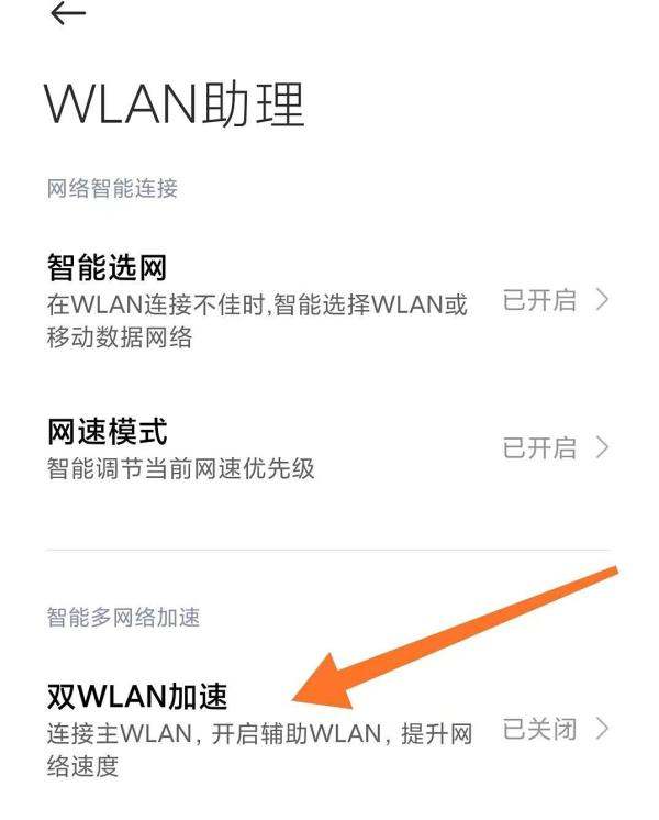 3. 找到双WLAN加速的选项,点击进入。