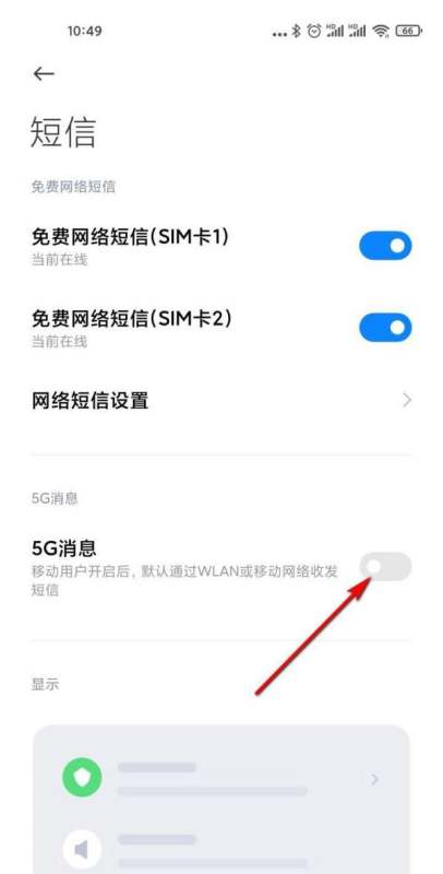 找到5G消息选项:在设置界面中,找到并点击与“5G消息”相关的选项(具体名称可能因系统版本略有差异,但通常会有明确标识)。