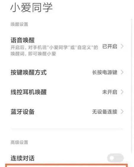 第二步:定位小爱同学模块在设置列表中滑动查找【小爱同学】选项,点击进入功能配置页面。