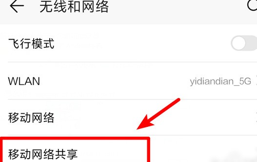4、点击设备连接选项后,进入无线和网络页面,点击移动网络共享。