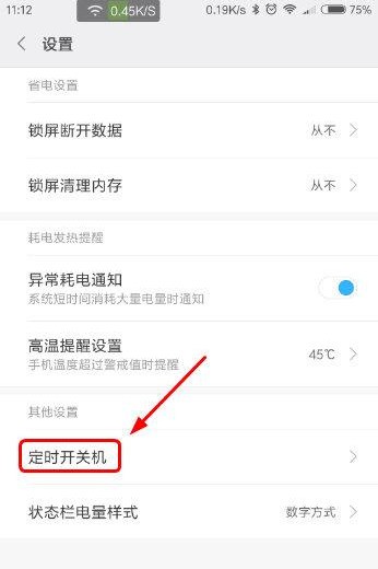 步骤3:找到定时开关机在设置页面中,向下滚动找到倒数第二个“定时开关机”选项,点击进入。