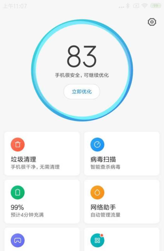 步骤1:进入安全中心打开手机“安全中心”应用,点击绿色电池图标进入省电优化页面。