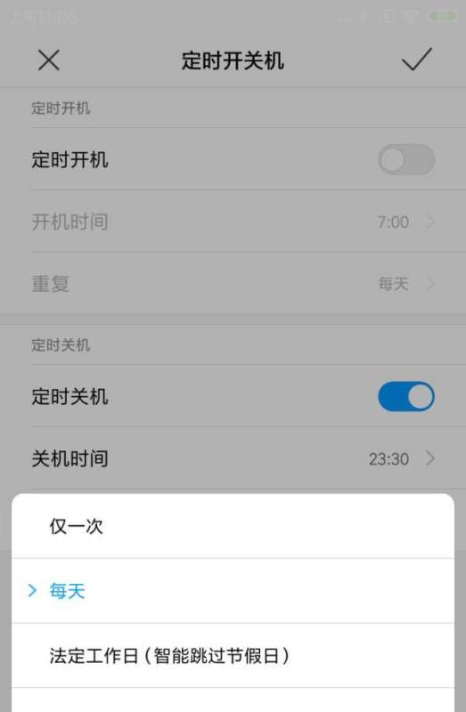 关机重复:点击“关机重复”图标,选择与开机相同的重复日期。
