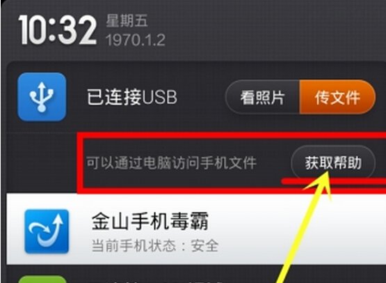 首先,用手机数据线把手机与电脑相互连接,下拉手机菜单栏 会出现下图所示