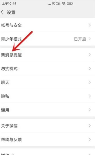 第四步,在设置界面点击“新消息提醒”。(如下图所示)